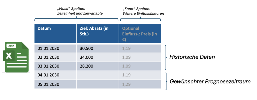 z.B. Absatzprognose unter zusätzlicher Berücksichtigung von Einflussfaktoren, wie etwa Preisaktionen oder Wettervorhersagen.